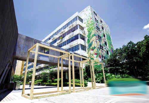 (图片来源:互联网) 这是以建筑设计师身份登上艺术舞台的约瑟夫·达贝尼克为本届双年展“量体”打造的装置作品《架空隧道和行人道之间的关系研究,3部分》,意图通过眼前三个与背景建筑的天桥部分等大的木质立方体,给习惯在公共空间中以被动姿态出现的我们一个不同的视界和反思。