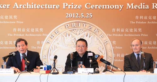 (图片来源:互联网) 普利兹克建筑奖颁奖典礼媒体会现场,王澍回答记者的问题: 要相信我们的建筑在世界潮流中有独立价值,城市化不能以大量传统建筑消失为代价,也不能过度依仗经济力量,传统建筑不能只靠商业和旅游才能存活。我们在杭州做中山路改造,我说如果让我做就不能拆迁,最后我们让它重新焕发街区的气氛。 现在中国城市是建筑堆积的结果,是时候反思什么是城市,城市化是否是唯一出路,进入城市复兴的新阶段。 王澍回答有关中国城市化发展的问题,他认为中国有50%的城市化率已经足够,主要人口仍在乡村,并表示自己的工作重点正在逐渐转移向乡村,他说,这中间有个价值观的问题,大家总认为城市比乡村好。我认为建筑师应当通过自己的工作改变人们意识里的城乡对立。我想,这是可以做到的。 对于如何看待外国建筑师设计了中国重要建筑的问题,王澍说,我认为现在开放的中国可以容纳多重文化线索并存,中国文化也应当更自信,能够容纳其他外来事物同时认清自身价值。并应该注意这不该以牺牲传统文化为代价。我们作为一个社会主义国家应该做社会主义该做的事,防止商业行为侵蚀破坏我们的生活。在以他的杭州街区改造为例后,他说,可能中国城市大的格局比较糟糕,但局部的解决仍有可能。 王澍说,我认为自己是一个生在当下的17世纪的人,我和李渔对于文化的感受有相通之处。李渔对文化和细节的感受,能够去设计渔船上的花窗,画了很多很多草图,等等。 帕伦博勋爵说,我认为北京的选择,他们选择了这些获得过普利兹克奖的大师进行设计。我赞同王澍所说的开放地容纳并且取得平衡。我们现在的建筑正在寻求这种平衡。 普利兹克先生说:“我们认为王澍的建筑和他的哲学理念是合二为一的,我们也非常认可他的理念,所以才把2012年的奖项发给他。” 王澍在回答纽约时报记者提问时说:“建筑师要通过自己的创作帮助人们跨越城市和乡村之间的鸿沟。” 帕伦博勋爵说,我认为北京的选择,他们选择了这些获得过普利兹克奖的大师进行设计。我赞同王澍所说的开放地容纳并且取得平衡。我们现在的建筑正在寻求这种平衡。 王澍说,如果甲方提出强势要求,我肯定不做,我认为规模过大就会失去正确的尺度感,遇到大型项目,我就把大项目消解成尺度小的项目,甲方不同意我就不做。获奖对我生活的改变,我们工作室的工作方式不会变,这就是我的生活,但有一点改变是,我们以前一年做一个项目,现在决定翻一倍,一年做两个项目。 谈到获奖后会不会继续坚持自己“业余”的风格,王澍说:“我就是这样活着的,不会改变。但是因为大家的诚意,我以前每年做一个项目,现在我打算做两个。” 王澍说,我的项目有很多都在跟使用者交流引导,如果实在讨论不通,我们就重做,只有这一个办法,现在的建筑专业制度把建筑师和使用者分裂了。我认为这必须沟通。我在做宁波博物馆项目时,开了一个一万人参加的大会,向人们解释我的设计。 您获奖之后被推上风口浪尖,甚至被称为异类,您怎么看待这种评价?王澍:过去一直被当作异类我都习惯了。我觉得我们的社会异类太少了。应该有更多的异类出现才是正常的。 您一直在批判中国城市化进程中出现的欧美郊区化趋势,应该怎样去挽救?王澍:我们现在的城市并不能成其为城市只是一堆大房子的集合。现在应该是一个契机开始讨论城市复兴,讨论什么才是真正的城市。