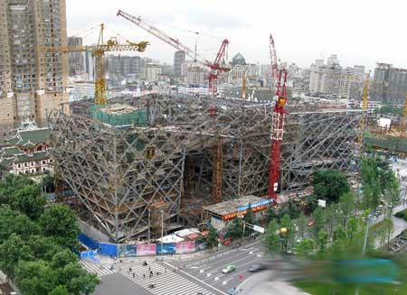 (图片来源:互联网) 由苏格兰Sutherland Hussey事务所设计的成都市博物馆初现雏形,并计划在2013年3月完工。 这座俯瞰天府广场的博物馆已经完成了框架部分的搭建,除了展馆之外,还将设置临时展区、皮影戏剧院、文物仓库以及可俯瞰天府广场的顶层餐馆等。 成都市博物馆的造价为9亿人民币,地上有4层,地下有4层,面积为8万平方米。目前,Sutherland Hussey事务所正与北京的泛道国际设计咨询有限公司(Pansoloution International Design)合作,推进这个项目的进展。 |