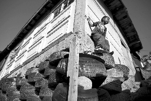 将废弃轮胎使用于建筑之中是墨西哥蒂华纳市一个常见的情景,主要集中在贫民区及郊区。因废旧轮胎在当地很容易获得,人们便将其用于建筑之中。