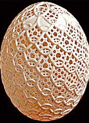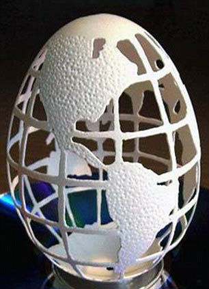 (图片来源:广州日报) 格罗姆雕刻的原材料并不局限于鸡蛋,也用鸭蛋、鹅蛋、火鸡蛋乃至鸵鸟蛋。