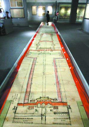 样式雷图档”中的大清门至坤宁宫中一路立样糙底在展览会上展出