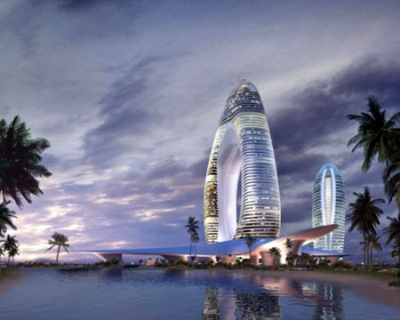 标志性建筑(图片来源:互联网) 为一体的商业综合体,主要布局为商业区、酒店及餐饮服务区、公寓写字楼配套区等三个功能区,并配有大型的地下停车场。 按照建设规划,该项目将分为两期进行开发,一期主要建设商业、酒店及餐饮等服务设施,计划于今年年底完成主体工程,明年下半年建成使用;二期主要建设公寓及其他配套设施,计划于2014年6月30日完成总体开发,并投入使用。项目建成后,将成为园区标志性建筑。