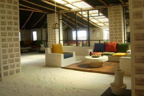Palacio de Sal(西班牙语,意为“盐之宫殿”),是用盐砖建造的一家酒店,位于玻利维亚的首都拉巴斯内,靠近世界最大的盐碱滩Salar de Uyuni(乌尤尼盐沼)。拉巴斯人民之所以想到用这么独特新颖的材料来建房子,是因为这个地区严重缺乏木材和其他传统的建筑材料。这家酒店的建造使用了1百万块盐砖,地板、墙壁、天花、家具,还有雕像都是用盐砖造的。而酒店的特色是干桑拿、蒸汽房、盐水泳池、漩涡浴和高尔夫课程。很明显,这里还有一条规则,那就是:请不要与墙壁舌吻!