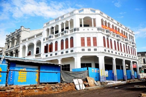 海口骑楼老街,是海口市一处最具特色的街道景观。其中最古老的建筑四牌楼建于南宋,至今已有700多年历史。经过几百年岁月的洗礼,海口骑楼已经渐渐露出疲态:许多骑楼的外墙已经脱落,风雨侵蚀之后的砖头和木料暴露在外。2008年12月,《海口骑楼建筑历史文化街区保护和综合整治规划》获得通过,总投资47亿元,将对骑楼进行保护和综合整治。7月3日,商报记者走访了解到,海口骑楼老街首批10幢历史建筑基本修复完毕。