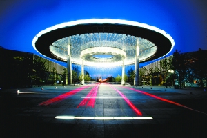 近日,中关村软件园广场上空亮起了一个直径达到85米的“UFO”,一环环的光圈,开始向外放射出暖色的光。如果走近看,这个悬挂在30米高空的巨大光盘还真有点吓人。而实际上,这是全国首例最大的光盘造景建筑,它从近期开始进行夜间照明调试。
