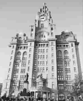 惠里与用火柴搭建的利物浦大厦,右为大厦实景