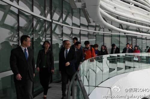 潘石屹和美埃等厂商、媒体和业主代表参观银河SOHO顶层新风系统机房(一)