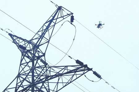 (图片来源:互联网) 多轴遥控飞行器直径1、4米,最大起飞重量14KG,使用锂电池为能源。通电即可工作,通过8个轴末端的电动机转动,带动旋翼从而产生上升动力。多轴飞行器飞行速度每秒3-5米的速度往返于两塔架之间,只需要几分钟内即可完成作业。多轴遥控飞行器放线对场地要求低,抗风能力强,携带方便。飞行器在空中可旋停较长时间,架线效率得到大幅度提高。同时,操作人员可通过机器上回传高精度图像,在操作过程中实施远程监控确保放线安全。 康崇500千伏Ⅲ、Ⅳ线路Ⅰ标段,每个放线段的高差一般在1200米左右,大山如刀砍斧劈一般,壁立千仞,线路走廊全在半山腰上,施工条件十分艰苦,在飞跃16号塔至9号塔放线方案中,由于地形原因,飞行器操作人员采用在16号塔操控飞行器起飞至14号塔降落,起降塔之间的线路长度有1200米,落差高度有500多米,操作人员通过遥控器和实时监控画面,把飞行器安全准确的降落到指定塔位。又从14号塔飞至9号塔,实施全长3200米空中放线作业。 |