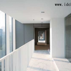 设计概念 我们所负责的北区东栋,主要采用了“水晶立面(Jelly facade)”的设计概念。我们希望将这里打造成具有一定宽度的透明空间,就好比是一个巨型的汉堡包,在幅长约为17米的混凝土框架结构的东西两侧,加装进深为3~4米的玻璃,形成水晶立面的外观效果。该建筑一、二层为商业用,三、四层为办公用,在垂直方向上分为两个部分,在水平方向上以13米为一个单位,分为八个部分。这样,我们就把长约100米的建筑立面分为了2x8=16个部分。同时,由于立面采用凹凸相间的设计,整体看来形成了东西两侧高低不平、起伏有致的立面造型。