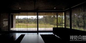 这个方形别墅如同一块大地板铺垫在平原的边缘。