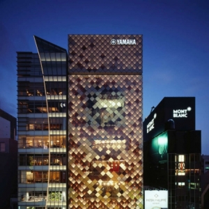 Yamaha公司是日本领先的乐器生产商,为了突出公司的品牌形像和建筑设计,办公楼的设计目标是“让建筑流露出乐感,并把传统和创新联合在一起”。建筑的概念外观是:木管乐器置于玻璃柜内。建筑内三个大厅空间连接在一起,面对着大街。