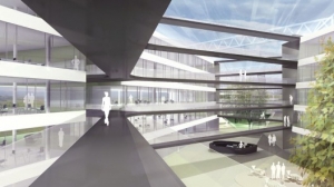 这是由德国事务所kadawittfeldarchitektur为着名体育品牌Adidas设计的一个研发设施,这个五层的结构为员工提供另外的1700个工位,它们沿着建筑的Z字形平面排布,在一个中心中庭处交织,一系列的高抬通道,形象地被称为鞋带,它们贯穿交织,表达出生动的空间造型,十字形流通将不同的办公室串起来,使员工可以在开阔的体量内自由穿行。