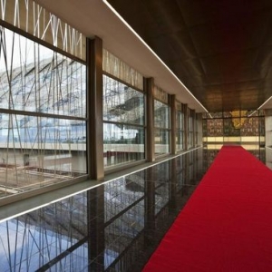 该SIPOPO会议中心由Tabanlioglu事务所设计,位于赤道几内亚第二大城市马拉博,项目靠近海岸,周围被森林包围。一个矩形的两层建筑嵌套于一个半透明的金属外表皮内。花边的网格子为室内带来一种遮阴的感觉,但同时又不会阻挡透明度。玻璃墙系统使人们有开阔的视野,不会因为任何水平或是垂直的框架而阻挡朝着海洋的视野。