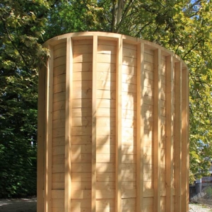 建筑系的导师和学生在卢布尔雅那建立了一个带有小水池的木制阁楼。
