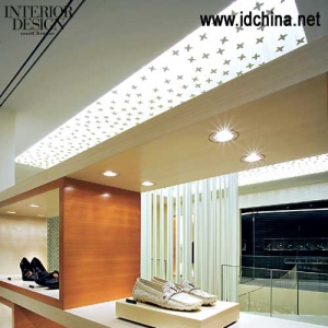 或许是出于谦虚,或是出于礼貌,或是他真的想把真实的感受告诉真正想听他的想法的人们。不管是出于何种原因,每当问及由他本人设计的路易·威登店(Louis Vuitton store)(它坐落于日本名古屋)时,埃里克·卡尔森(Eric Carlson)所做的第一件事就是称赞由Nagaishi Architecture设计的该建筑的正面效果。它由一些螺旋状的铝条构成,铝条经过喷饰处理。这些铝条被垂直地安放在了玻璃幕墙中。在金属卤化物的作用下,该建筑微弱的外层在白天和天黑以后能够自动调节光线。卡尔森说该建筑的外部设计借鉴了日本礼品的包装艺术。而在“这个精致的盒子R21;内,既有现代的商品也有古典的商品,既有皮革制品和鞋子,又有男女式成衣。