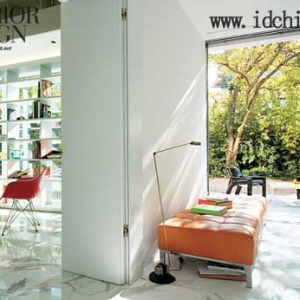 菲利普·斯杜比(Philippe Stuebi)设计了一个像船首一样的图书室,它与这所别墅与众不同的外形相呼应。双层高的房间其独特之处,不在于他的外形,而是其材料的独特运用:整个别墅的底层用玻璃材料饰面。“这已经是足够长的玻璃框架了,尽达20英尺,我们必须确保,它们不但能够阻挡紫外线,而且还能起到隔热的作用,”斯杜比说。“通常人们对书籍的保护不会用此种做法,因此我们找不到可以仿效的实例。”
