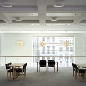 坐落于公园大道,美国斯堪的纳维亚内务包含行政,教育和文化活动。采用现代特点的北欧设计,外观用锌板材料,产生了具有浮动现象的玻璃。整个外观,在一定程度可收集阳光能源。该内务结合了文化娱乐、办公为一体,第一和第二层是接收和收集的空间;第三楼是展览厅;四楼是画廊,图书馆和儿童的学习为中心;第五和第六层是会议和研讨会室和办公室。