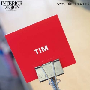 拉里尔和马奇尽可能选择环保型饰面及材料:低VOC漆、压缩再生纸制成的布告板、油布毡桌面以及山羊毛地面材料。创造性的重新使用也是一种方式。例如,悬挂在接待处混凝土块墙壁上的是一个古式的红色J&J标志,它是由海克尔发现的——从公司的一处设施内拆卸下来,并从垃圾中回收回来。几英尺远处,一张矮桌放置在埃罗.萨里宁(Eero Saarinen)设计的深蓝色“Womb”椅和皮埃罗.利索尼(Piero Lissoni)设计的红色沙发之间,此处的桌子是从设计小组之前的办公室里回收而来的。其材料为层叠夹合板桌面制成。最上方刻着J&J的信条理念。