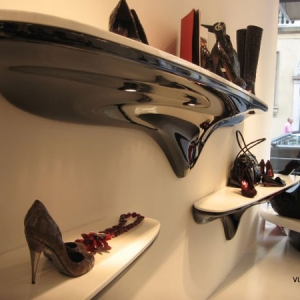 意大利设计师Matteo Pierotti为著名品牌塞巴斯蒂安设计了这个专营店,该设计利用了类似于液体的货架来给人视觉上的冲击。