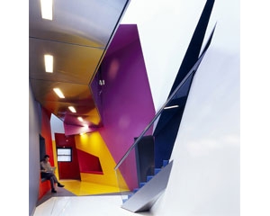 Surface 建筑师赢得了比赛,从而建造了Birkbeck学院电影及视觉媒体研究中心。他们改变了原先的地下室,并向地下延长形成一座独特的80座电影院礼堂,四周是多媒体学习套房,会议室和办公室。每一处走道的设计和楼梯的颜色都很丰富。