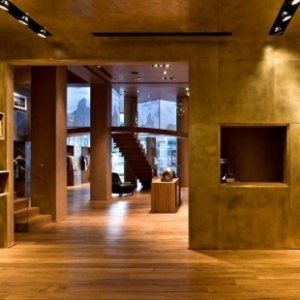 意大利建筑师事务所DeCarloGualla设计了Napapijri艺术店铺,设在充满魅力的购物天堂与时尚之都——米兰。在米兰的Napapijri艺术店铺有两部分空间。地下约450平方米,主打服饰,挂在天花板上的两个大冰块非常吸人眼球。另一空间专门经营衣物配件。这一区域天花板采用黄铜材料。特殊的磁系统可确保柚木可以在垂直表面自由移动。还有两个房间使用彩色石膏。在这一领域,我们发现三大特色:一扇大天窗冲破屋顶的束缚,一片圆形空地和一个大金属球象征着世界地图。