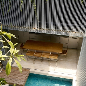 55 Blair Road的空间带来兴奋的感觉,这是不寻常的排屋类型。这所住处融合自然与现代生活,充满艺术装饰风格。为了营造开放的计划,同时促进内部/外部空间感。设计师运用了金属元素和细微的色调对比,创造整个令人振奋的空间关系。 55 Blair Road工程是对一个传统艺术风格的商店建筑进行改建和革新设计。原来的房子是10年前装修的。新的业主认为它太黑暗,希望能够在居住空间的采光度上有所创新。 空间连续性是一个关键概念,以促进外部/内部空间关系。一楼采用灵活的玻璃幕墙,可以直接进入。房子分离室外游泳池和花园。其中以玻璃间隔,双方都打开后,一楼则成为一个巨大的空间。该计划提倡对空间的多样性。地面层不仅是休息室和就餐区,也是一个理想的休闲场所。尾部(房子的服务区)容纳厨房,化妆室,女佣的房间和一间屋顶露台。整体计划成功地建立了内部和外部之间的空间关系,满足客户的愿望。