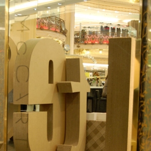 伦敦设计师贾尔斯米勒已经创造了一个麦卡特尼弹出店,用两米高的纸板刻字拼写出时装设计师的名字。