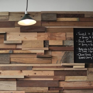 这个墨尔本咖啡店是由法国设计师Sasufi设计的,运用木材边料覆盖12米长的墙面。Slowpoke咖啡店的台面、地板等家具都是从当地的跳蚤市场回收过来的。