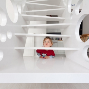 这个布达佩斯住宅的楼梯是由克罗地亚建筑师Biljana Jovanovic设计的,其圆形穿孔酷似瑞士奶酪的楔形。