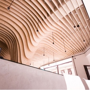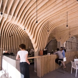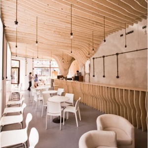 起伏洞穴状的天花板连接了这个在波兰罗兹咖啡厅酒吧上下左右,这个项目是由波兰建筑师xm3设计的。