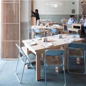 这个墨西哥食品餐厅是由建筑师Taller Tiliche设计的,奠定了抛光的混凝土地面,但故意留下未完成的天花板。