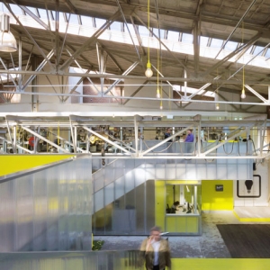 荷兰Ector Hoogstad建筑工作室将鹿特丹以前的一所钢铁厂转变成充满塑料桥梁,盆栽树木和野餐长凳的办公室。这个三层高的建筑物,国际管理发展学院(IMD)的新总部,位于马斯河旁边。
