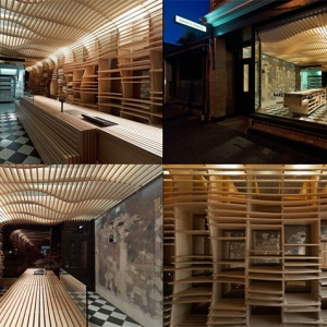 希腊一处面包店,店内环境宽敞,设计理念环保节能,减去繁复和奢华,还原面包香浓可口的本色。