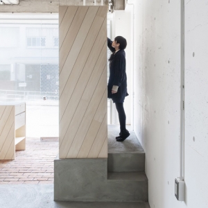 以下是日本设计师Reiichi Ikeda另一个项目,大阪的一个带有斜条纹木和磨砂玻璃的发廊。