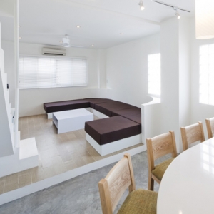 有一个为狗设计的特殊楼梯在胡志明市的这个新装修房子内,这所房子室内由建筑工作室07Beach设计的。