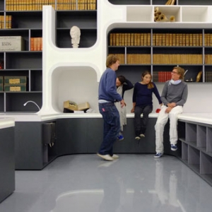 应读者要求,能多看些扎哈·哈迪德设计的Pierres比韦斯政府大楼的室内设计,这是一间阅读室,由建筑师斯特凡·霍夫设计的。