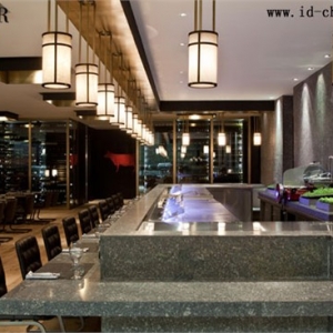 来源: 美国室内设计中文网 设计公司:亨伯特和波耶特设计机构 在2008年由亨伯特和波耶特设计机构设计,“BEEFBAR”连锁餐厅的大家庭中将会增加了一位具有国际设计风范的新成员,他坐落在墨西哥的摩纳哥。2012年上半年的时候在世界著名卡米诺酒店里正式开业。在设计这个高档的以肉类为主食的餐厅时,亨伯特和波耶特希望能够营造一种高雅却又简洁的用餐氛围。事实上,设计师埃米尔.亨伯特和克利斯朵夫.波耶特做到了。他们运用石材的纹理与温暖的肌理效果很好的表达了“BEEFBAR”连锁餐厅的设计主题。 休闲区、用餐区、自助用餐台这三个功能截然不同的空间相互穿插,不同的元素彼此介入。这些在于酒店的庭院都首次被白色大理石吧台联系在一起。 在休闲区,你会发现一个由慕拉诺岛玻璃制作而成的树枝状吊灯,再加上旁边黄色皮革质地的沙发和墙面上可以变换位置的黄色灯光带都会让你印象深刻。用餐区里,体积感很强的青铜墙面把户外人行道与用餐区严格的划分开来,使之互不影响。黑色木质画框及那些发出暖黄色光线的定制吊灯,都在渲染那种温馨的就餐环境。由大理石制成的自助用餐台,致力于生肉的的现场烹饪。顾客们在欣赏员工娴熟的操作技巧的同时也深深的体会到餐厅的特色文化。亨伯特和波耶特设计机构设计喜欢用个性化的眼光对待他的每一个案子。在墨西哥的“BEEFBAR”连锁餐厅中,他们建造了一个白色的酒吧台将整个酒店庭院与餐厅衔接,墙面上绿色的藤蔓以及吧台的颜色既是将酒店的风格延续到餐厅来,起到了一个过渡空间的作用。卫生间的洗手台也用到了吧台的那种白色大理石做基座,并且用镜面的不锈钢制作成的屏风作为阻挡。亨伯特和波耶特还将灯光打在这种屏风上,并使光线能反射到其他地方。