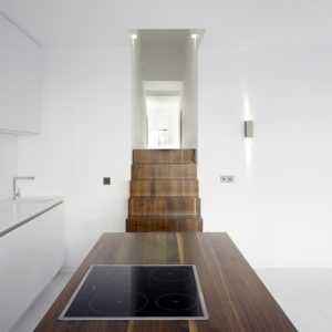 在伦敦梅菲尔的这所公寓中,黑胡桃木楼梯融入到厨房和浴室中,这由建筑工作室KHBT设计的。