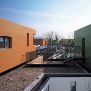 螺旋艺廊创造了一种从风景中进入建筑的方式。 “国内不允许私人拥有土地,所以没有那么多像国外那样好看的私人住宅。 同样,因为没有很好的结构工程师的配合,国内很多建筑师要身兼数职,做设计就不是那么纯粹的事。”柳亦春说。 或许是巧合,大舍参与的多个设计项目的服务群体都是青少年或者儿童。目前二人觉得最满意的作品是位于上海青浦的夏雨幼儿园。翻看幼儿园的设计规范和江南园林的平面,我们不难理解大舍构思的初衷,其中每个单元里必需的室外活动场地却很容易让人联想到江南园林中的院落布局。当高大的乔木植入各个院落,建筑在空中被化解,而最终的建筑形象也因这些树木而生机勃勃。这一设计为大舍赢得了诸多建筑界的荣誉。