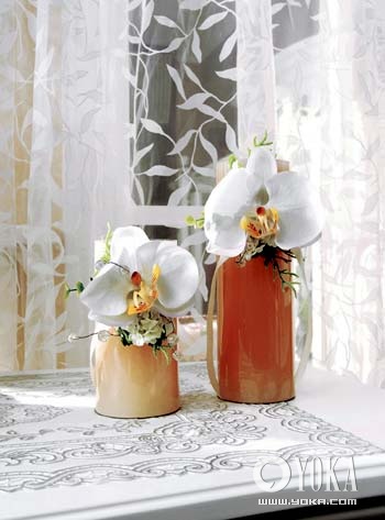 那是生命里最圣洁最喜悦的一刻,身边的一切,都恨不得布置成纯洁而坚贞的白,宣告不容改变的承诺与时光。窗下的置物小柜上,用白色通花窗帘和绣花桌布衬托婚庆蜡烛的温情脉脉,简单的布置,引发婚房内甜美与柔情的主旋律。