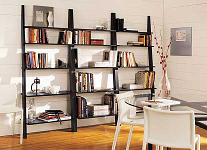 黑色的书架与白色墙面形成强烈对比,时尚,小资。