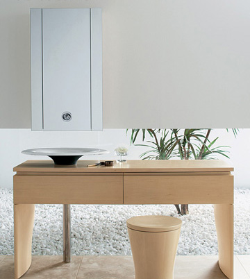 5.梳妆台款式使用更便利 选择浴室柜,主要看平时的使用习惯。如果你每天早上都要化妆,那么这款梳妆台样式的浴室柜一定不能错过。柜子的高度适合站立和坐下两种姿势,木质表面和真正的梳妆台相差无几,再搭配造型如花瓣般柔滑的台上盆,令梳妆时的心情非常愉快。