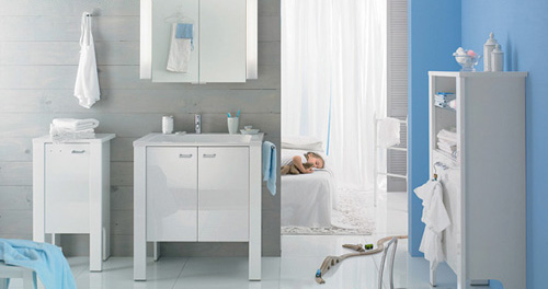 3.嵌入式安装保证空间无阻碍 想让浴室空间内部看上去整齐划一,你可以选择这种入墙式安装的浴室柜。可选组合样式非常丰富,包括洗手盆旁边、马桶以及收纳区的各种柜子。面板形象统一,可是细节设计看点很多,擦手纸、电源、吹风机、垃圾袋、马桶刷全部实现了嵌入收纳。面板还有多种色彩可选。只是在安装的时候需要对墙面进行预先处理,有点费工夫,完工之后,效果出众,特别是空间不太宽敞的浴室内,各种活动变得更加自如。