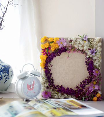鲜花作画 主要装饰材料:干花或鲜花 美丽的鲜花与干花其实并不是只能用来放置在花瓶里的,它们在装饰方面其实非常具有延展性—鲜花或干花做成的装饰画,既有立体效果,还可以自由组合,完全可以根据自己的喜好拼贴出漂亮的墙面装饰。