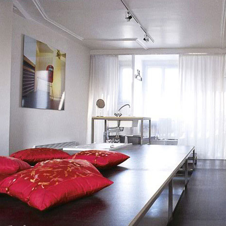 达人出招:变形家具带来便利面积较小,又想能满足更多的生活功能,最好从家具入手。比如选择能伸缩变形的家具,可以以很小的投入,为空间带来最多变化的可能。 Point 1 客厅与卧室 变形家具扩充空间