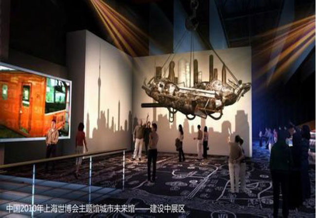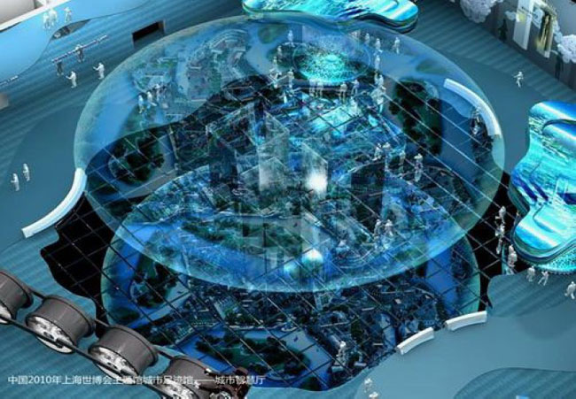 城市未来馆效果图 梦想引领人类城市的未来。“明日之梦”、“乌托邦与实践”、“未来就在这里”、“无限的可能”、“未来城市的梦想可以实现”……在城市未来馆的展区内,参观者不仅可以畅想未来城市,还可以了解历史上人们对未来城市的幻想、设计与实践。动态城市模型的舞台、展望未来的动画电影……在城市未来馆,“花园之城”、“水之城”、“太空之城”以及“能源之城”这五个对未来城市展望的故事将配合五个场景变化,表现未来城市的各种可能性。