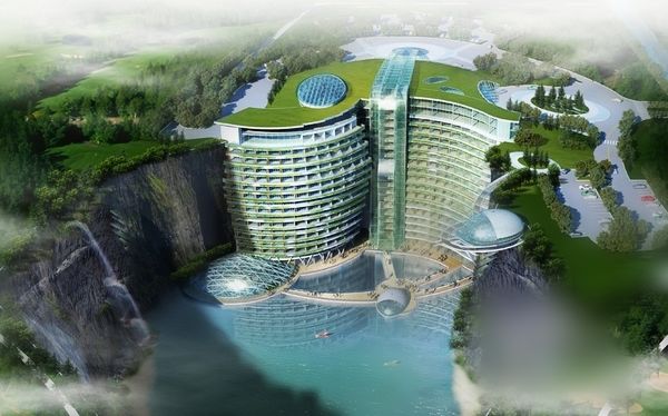 由英国建筑事务所Atkins设计的上海洲际世茂仙境酒店目前正在紧张的建造当中,该酒店位于中国松江,临近上海相邻,酒店的建造旨在丰富日渐稀少的人造景观。酒店高17层,地基高出地面两层楼的高度,其中大多数度假商业风格的酒店都位于这座高80米的建筑中。升高的入口随着由玻璃围绕的河流开始上升,之后随着地势的走向,流向悬崖边,成为一个瀑布景观,这里也是该建筑的垂直循环通道。