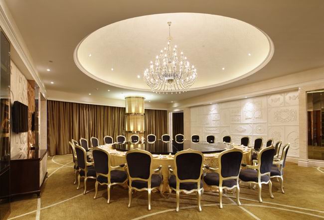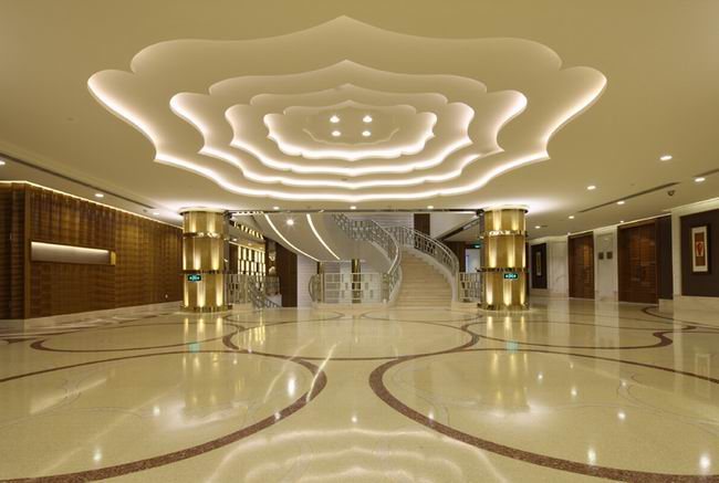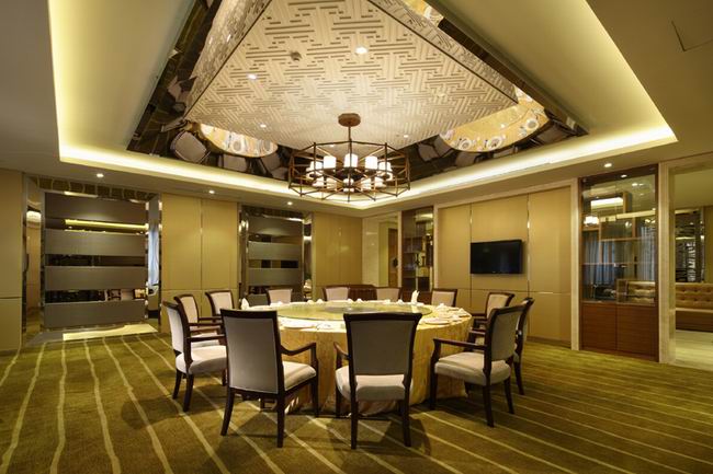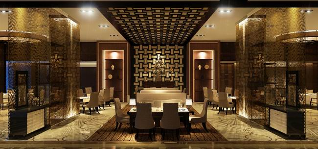 净雅餐厅未来城店位于沈阳市西滨河路,设计师王俊钦先生将自然元素手法延续在此案当中,运用后现代设计手法演绎传统文化,强化整体构想,在延续中国传统符号的同时,着重思考地域文化、材料美学、现代科技与当代艺术,创造出一种全新的隐喻古典图像的现代空间。“牡丹”主要表现在顶面造型之中,在恢弘的空间中增添了优雅的气质,烘托清雅闲逸的情境。“祥云”跃然于画面之上,散发着无限曼妙的意境,富有烟云溟濛的意趣,配合地面水波荡漾的图案,蜿蜓又悠然自得的神态表现的淋淋尽致,丰富了视觉效果,让人不禁幻想是徜徉在一望无际的大海之中。中庭的设计将柱子与梁的结构大胆的运用和处理,使空间多了份庄严与质朴。传统房屋中“瓦片”元素的运用更加贴近自然。