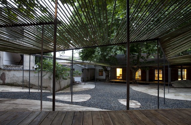 双栖斋的原址是一个猪圈,改造后两株老树被纳入建筑内部,做成了一个开放式厅堂。 2009 年,庄慎做出了一个重要决定,离开大舍,创办阿科米星。从这时起,庄慎开始更多地关注“建筑能干什么,建筑师能起什么作用”?现在他的团队共有 14 名设计师,所参与的项目不仅有以往的公共建筑,而且还让实践扩展至城镇和乡村的改造。“我们当然也接‘高富帅’项目,我们的实践并没有界限,而且也需要用好的经营来平衡那些探索研究的实践。但是对贴近大众的建造活动,我们现在会更有兴趣。” 目前阿科米星正在进行的项目之一是位于莫干山的一个旧蚕厂的改造,3000 平方米的室外空地,改造后将成为一个公共市集,而周围的几栋旧厂房则将变身成青年旅馆和餐饮场所。因为是从自然环境中就地取材,大量使用了竹材和石料,所以改造的成本很低,庄慎说这是个“不挣钱的项目”,但是特别有助于在实践中提高建筑师的设计技巧和创造思维。比如青年旅馆的一楼是下沉式的,有半截门窗露在地面上,他们请当地的手工匠用竹条编了几个大大的像鸟笼一样的罩子,罩在每间房间的门窗外,这样就等于为一楼的每一户圈出了一小片天井,既保证了采光,又有一定的私密性。